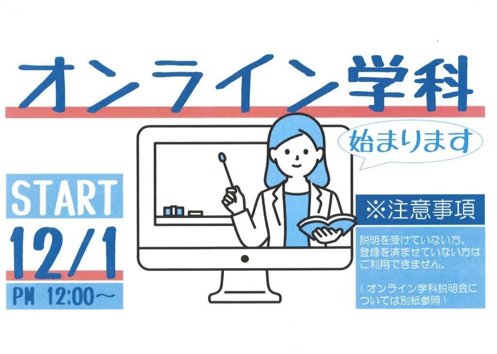 令和7年12月1日PM12時より「オンライン学科教習」を開始いたします。